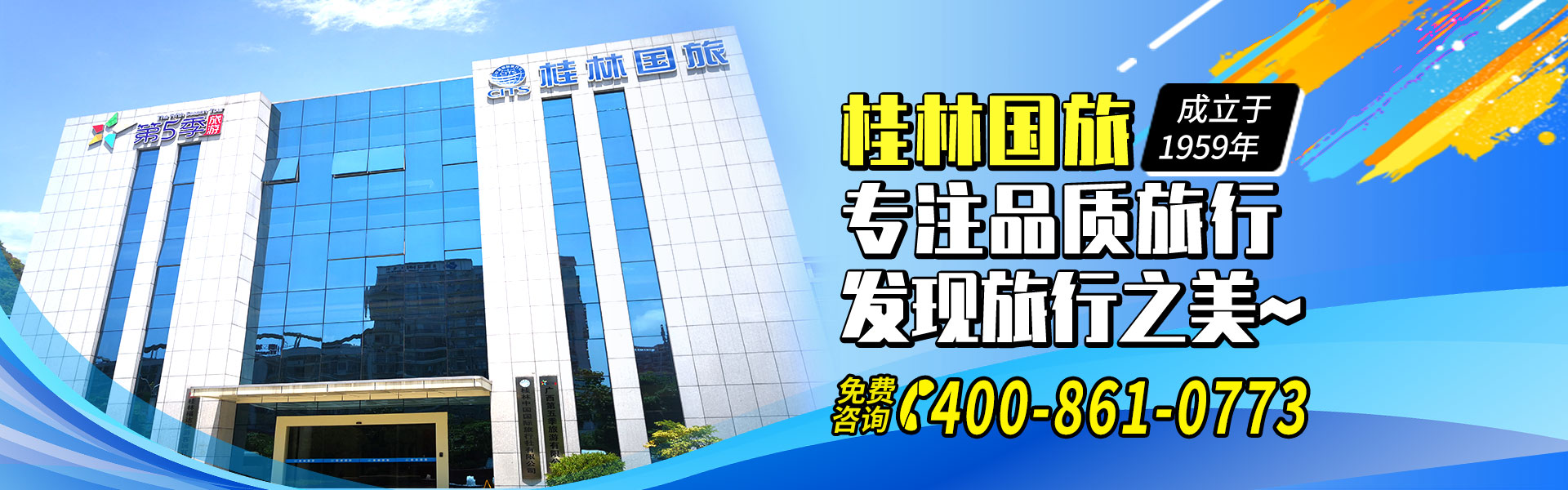 桂林國旅,全稱桂林中國國際旅行社有限責任公司,創建于1959年10月20日,距今已有60多年歷史。從1959年成立至今,桂林國旅以優質的服務及良好的口碑連續多年獲得“全國百強國際旅行社”、“廣西十強國際旅行社”、“廣西自治區服務業品牌”等榮譽稱號。桂林國旅作為桂林旅游市場的領頭羊,參與和引領桂林旅游市場的發展。桂林國旅將一如既往地以嚴謹高效的服務態度、品質為先的服務理念,為廣大旅游者提供全面、貼心的旅游、旅行服務。